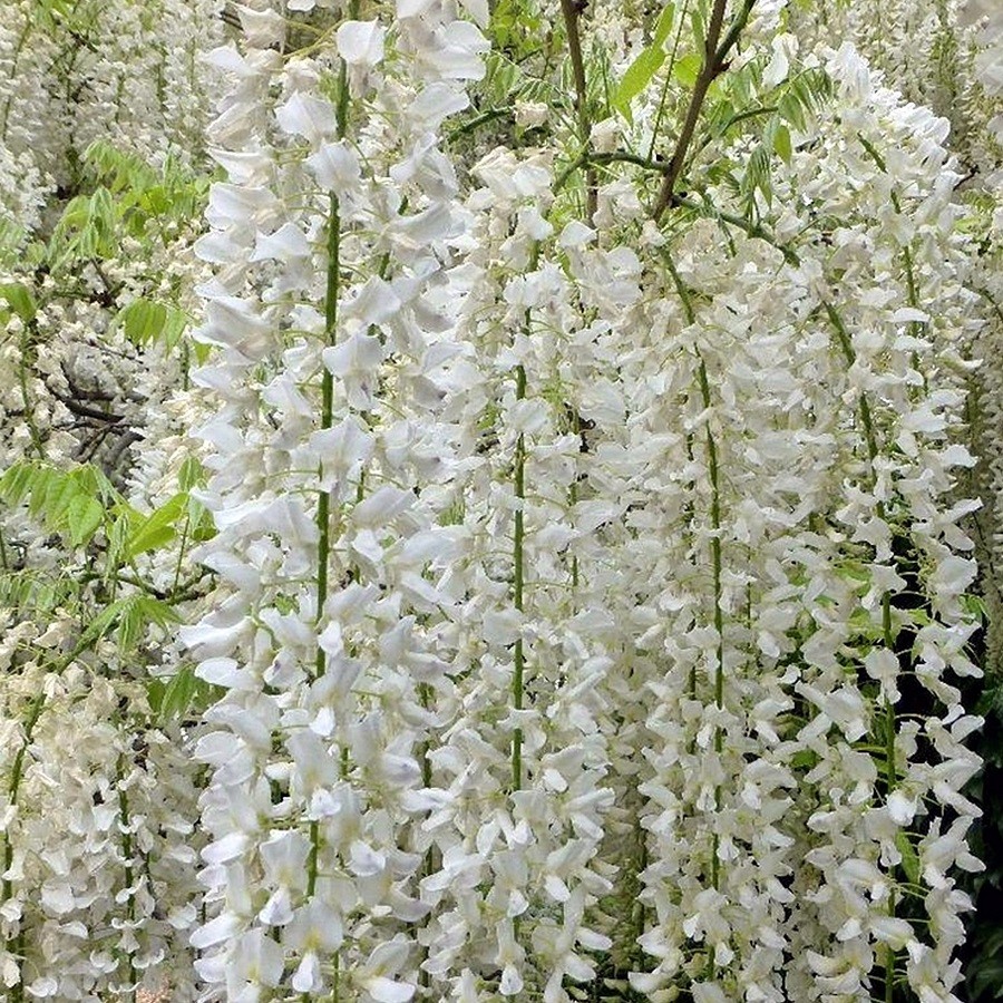 Саженцы глицинии китайской Alba пользуются огромной популярностью у садоводов и дизайнеров ландшафта. Взрослое деревце ежегодно вырастает на 1-2 метра, в конечном результате достигая 6 метров. В мае на повислых ветвях распускаются белоснежные цветы, которые повторно появляются в конце августа. Этот сорт отличается высокой декоративностью. Глициния китайская Alba предпочитает плодородную рыхлую почву. Выбирая место для посадки, следует отдать предпочтение хорошо освещенным участкам, защищенным от ветра. Растение нуждается в опоре, которую необходимо установить сразу после посадки.