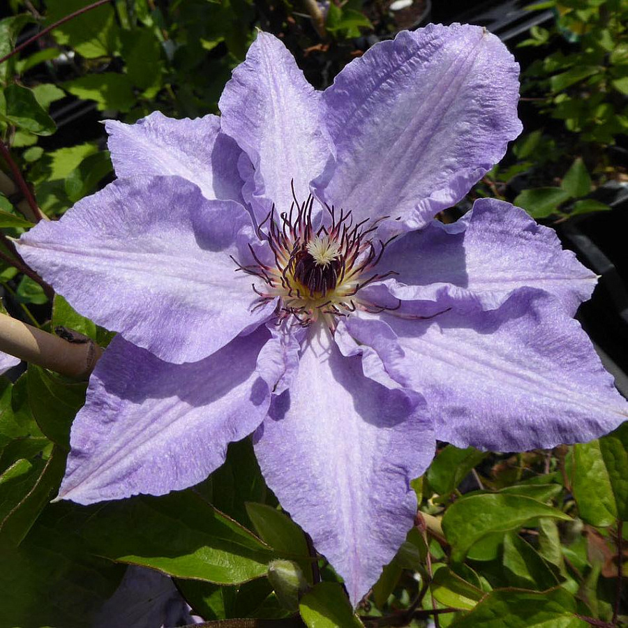 Саженцы клематиса гибридного Майосотис (Myosotis) выживают на солнечных участках с легкими и плодородными почвами. Саженцы подходят для выращивания в открытом грунте и контейнерах. Высота растения 150-200 см, побегам нужна опора. Цветение обильное в мае-июне, повторяется в августе. Цветки крупные, достигают 8-12 см в диаметре, светло-фиолетовые с гофрированными краями. Клематис гибридный Майосотис (Myosotis) подходит для одиночных и групповых посадок. Применяют для вертикального озеленения садовых участков, балконов и террас.