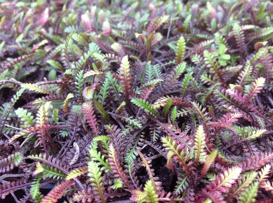 Рассада лептинеллы гребенчатой Platt’s Black (Leptinella pectinata) подходит для декорирования участков под розами и декоративными кустарниками, для посадки в альпинариях, рокариях и контейнерах. Выращивается растение в почве, которая имеет хороший дренаж, но не высыхает, в солнечном или полутенистом месте. Лептинелла гребенчатая Platt’s Black — это невысокий ковровый многолетник с маленькими листьями, как у папоротника, бронзово-черного окраса или цвета красного дерева с зелеными кончиками. Летом на кусте появляются желтоватые цветки. Высота растения составляет всего 10 см, а ширина — до 30 см.