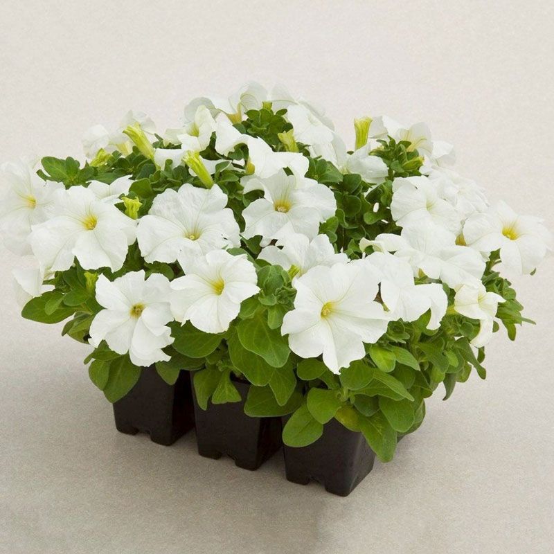 Петуния грандифлора призм вайт - это волшебное растение, которое привнесет нотки свежести и изысканности в ваш сад. Ее стебель прочный и изящный, достигает высоты 25-35 см, а цветки белого оттенка словно сверкают под лучами солнца. Листья петунии грандифлора призм вайт имеют форму, напоминающую сердце, что придает растению особый шарм.